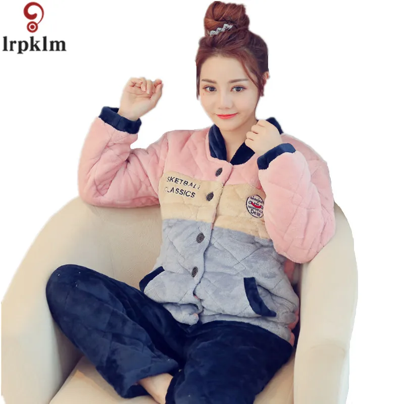 17 Nouveau Hiver Garder Au Chaud Epais Corail Polaire Femmes Matelasse Pyjamas Ensemble De Sommeil Veste Et Pantalon Flanelle Nuit Thermique Chemise De Nuit Aliexpress