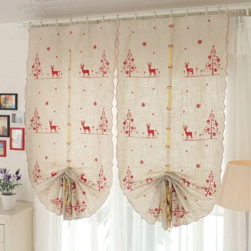 Style Campagnard Coton Lin Broderie Rred Cerf Ballon Rideau Jour De Noel Decoratif Rideau Romain Hauteur Reglable Aliexpress