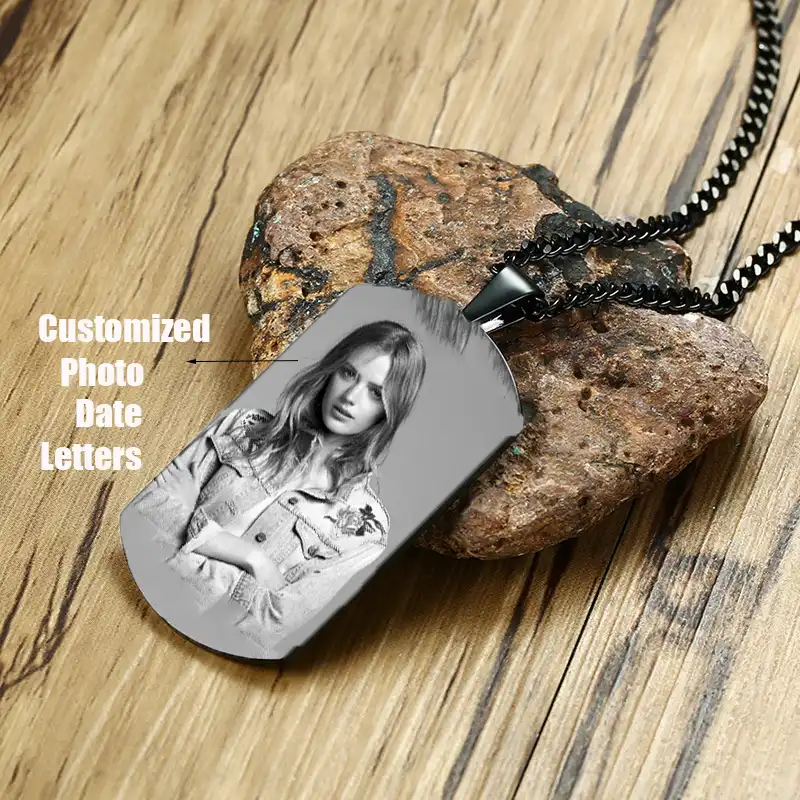 Cadeau Pour La Fete Des Peres Collier Homme Collier Grave Collier En Photo Personnalise Etiquette Pour Chien