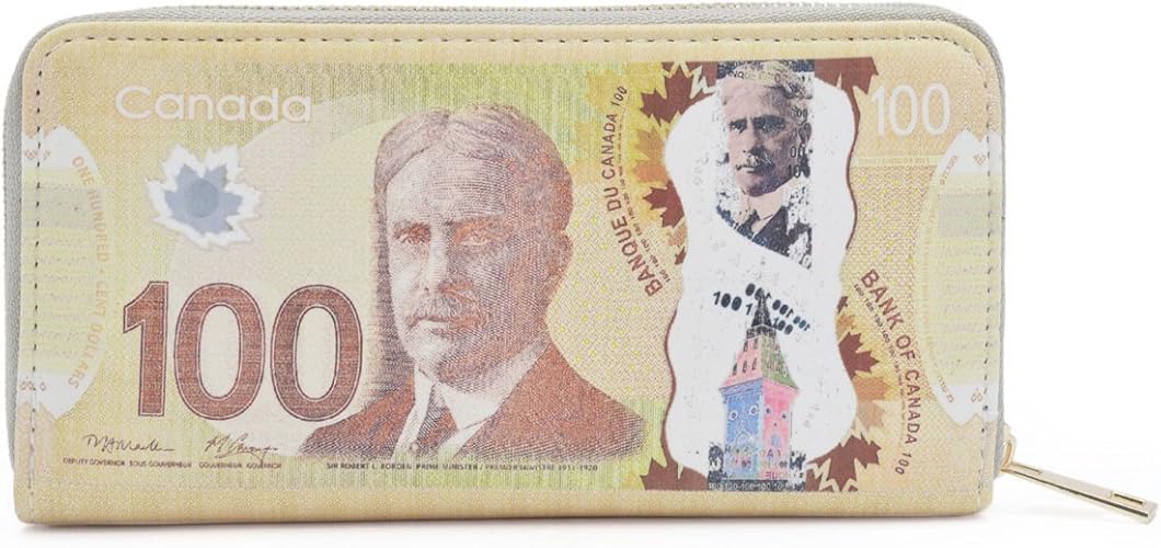 Amazon Com Canadian Dollar 100 Cad Currency Money Bill Print Pu Leather Zip Around Wallet Shoes