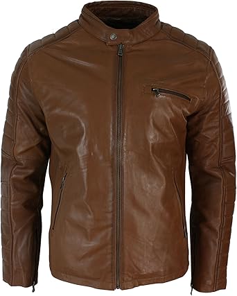 Xposed Veste Moto Pour Homme En Cuir Veritable Souple Brun Zippee Style Vintage Casual Chic Amazon Fr Vetements Et Accessoires