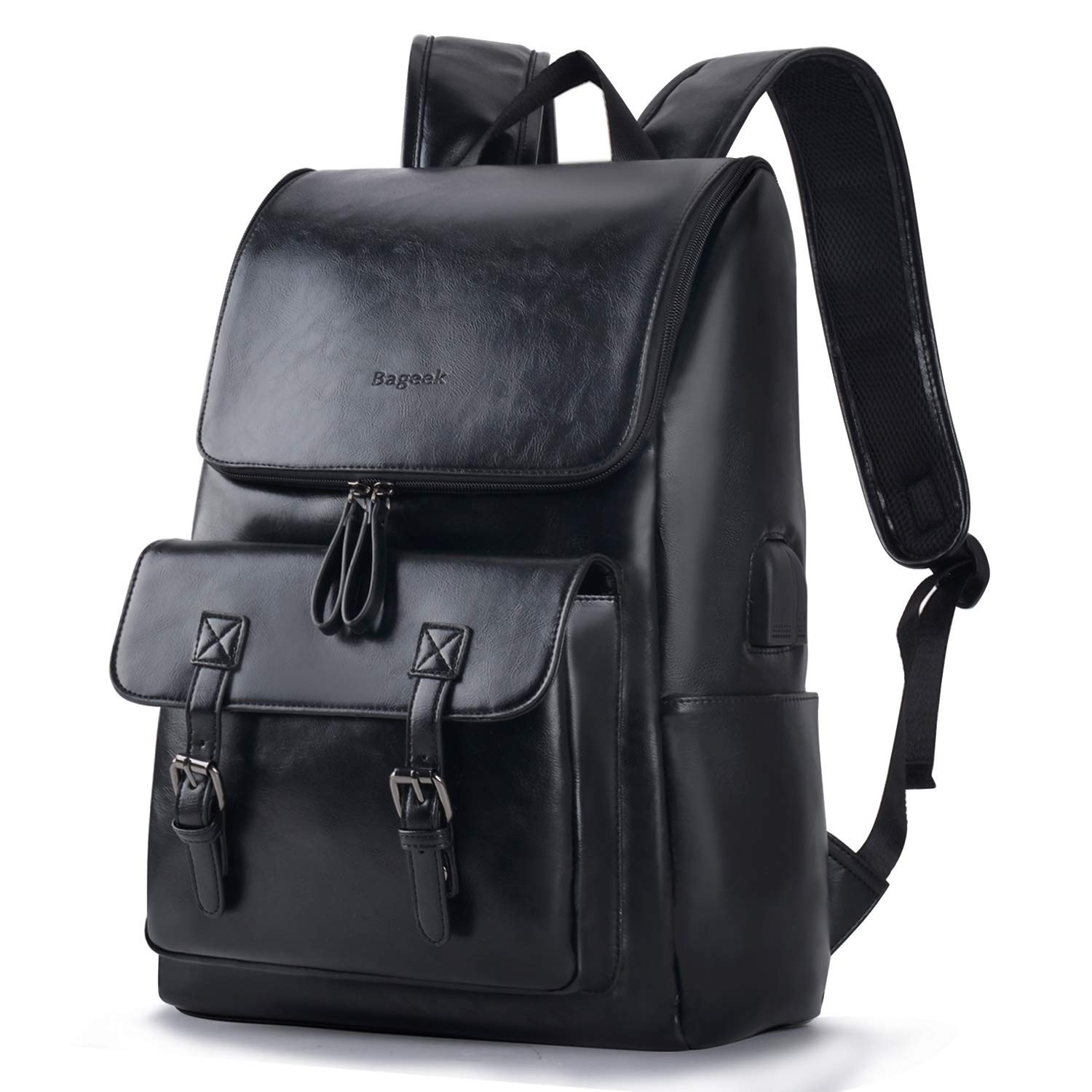 Bageek Sac A Dos Homme Cuir Synthetique Sac Dos Voyage Ordinateur Portable 15 6 Pouces Avec Interface Usb Et Prise Casque Sac A Dos College Grande Capacite Accessoires Pour Ordinateur Portable Sacs Et