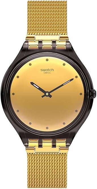 Swatch Skinmoka Svoc100m Montre Pour Femme Cadran Dore En Acier Inoxydable Swatch Amazon Fr Montres