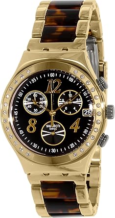Montre Swatch Femme Acier Dore Jaune Et Noir Femme Homme Modele Yvg407g Maty