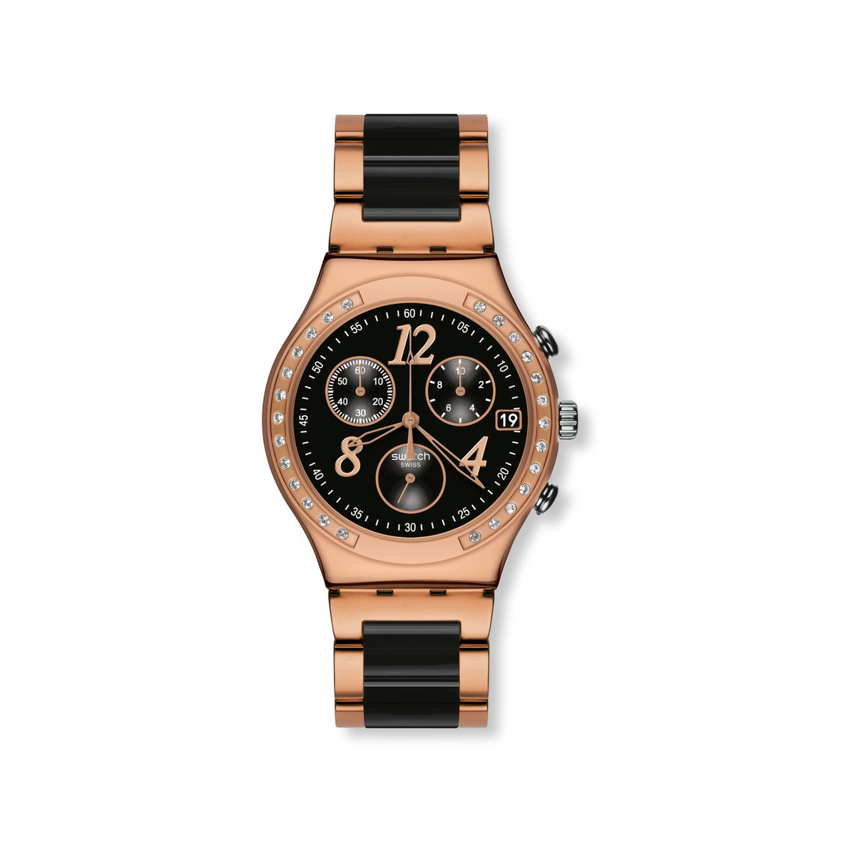 Montre Swatch Femme Chrono Brac Noir Dore Femme Modele Ycg404g Maty