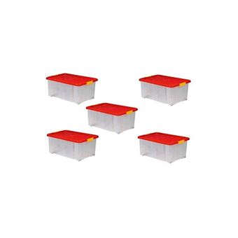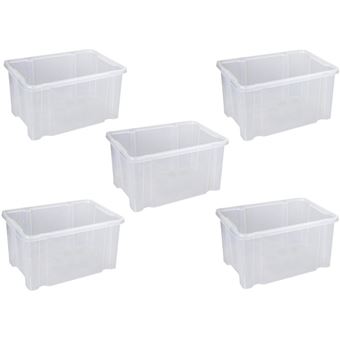 Lot De 5 Boites De Rangement Plastique Transparente Bac A Superposer Ou Empiler 27l 44 5 X 35 X 24 Cm Achat Prix Fnac