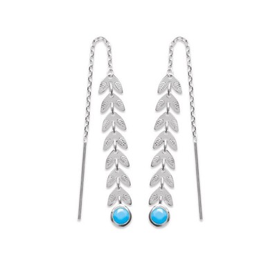 Boucles D Oreilles Pendantes Feuille Laurier Pierre Turquoise Argent Massif 925 Ebay