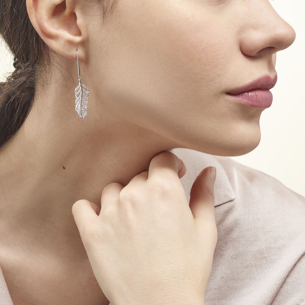 Boucles D Oreilles Plume Argent Sans Pierre Blanc 925 1000 Histoire D Or