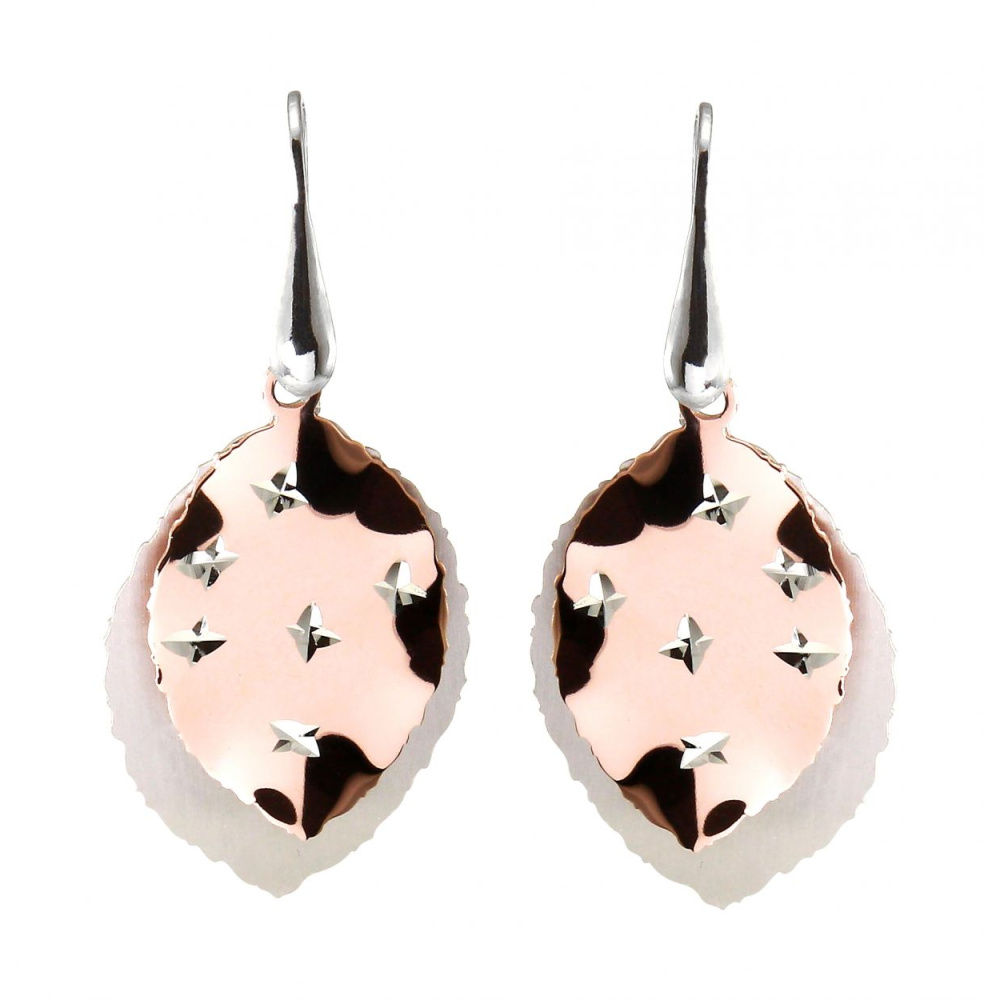 Boucles D Oreilles Pendantes Argent Rhodie Feuilles 2 Tons Ref