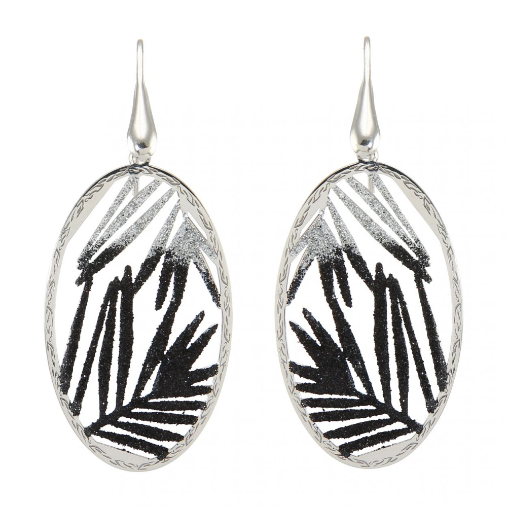 Boucles D Oreilles Pendantes Argent Rhodie Feuilles Pailletees Ref