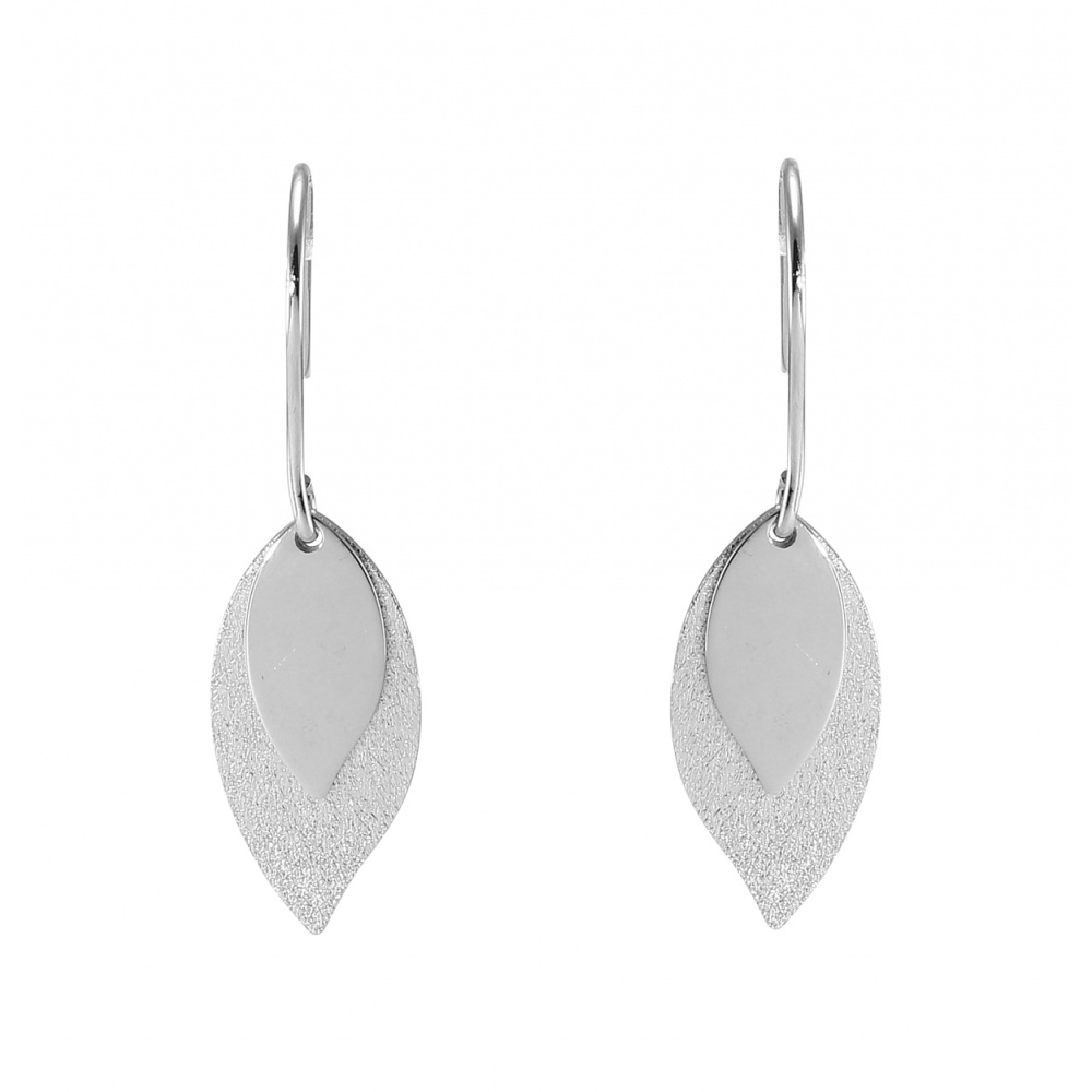 Boucles D Oreilles Pendantes En Argent Rhodie 2 Feuilles Suspendues 1 Lisse Et L Autre Ornee
