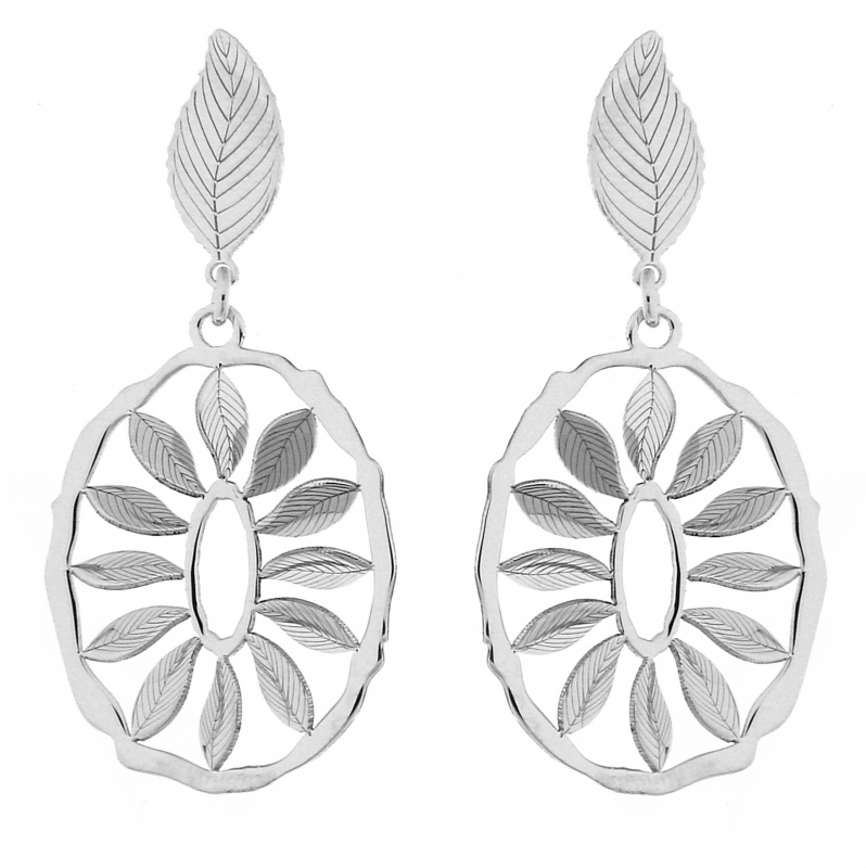 Boucles D Oreilles Pendantes Feuille Ajouree Argent Ocarat