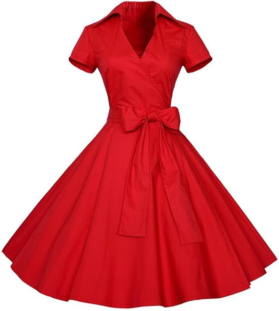 Retro Vintage Annees 60 S Style Audrey Hepburn Rockabilly Swing Robe De Soiree Gala Cocktail Pin Up A Manches Courtes Rouge S Amazon Fr Vetements Et Accessoires
