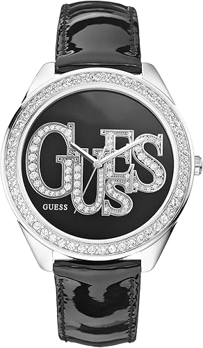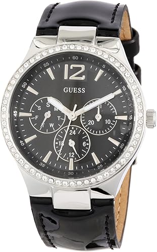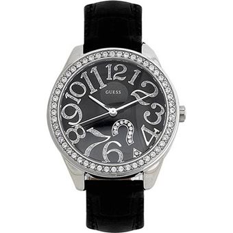 Montre Femme Guess Bracelet Cuir Noir Brillant W03l2 Pour Femme