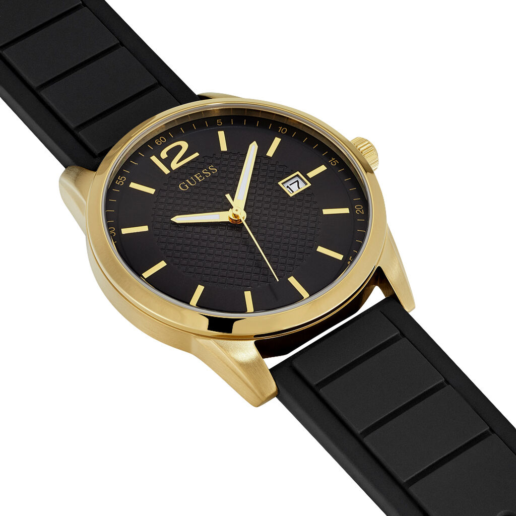 Montre Guess Homme Acier Dore Silicone Noir Homme Modele W0991g2 Maty