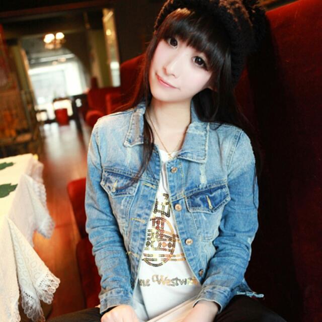 Fashion Korean Style Vintage Ripped Blue Jean Jackets Women Jaquetas Femininas Veste En Jean Femme Denim Jacket Chaquetas Mujer Women S Fashion On Carousell