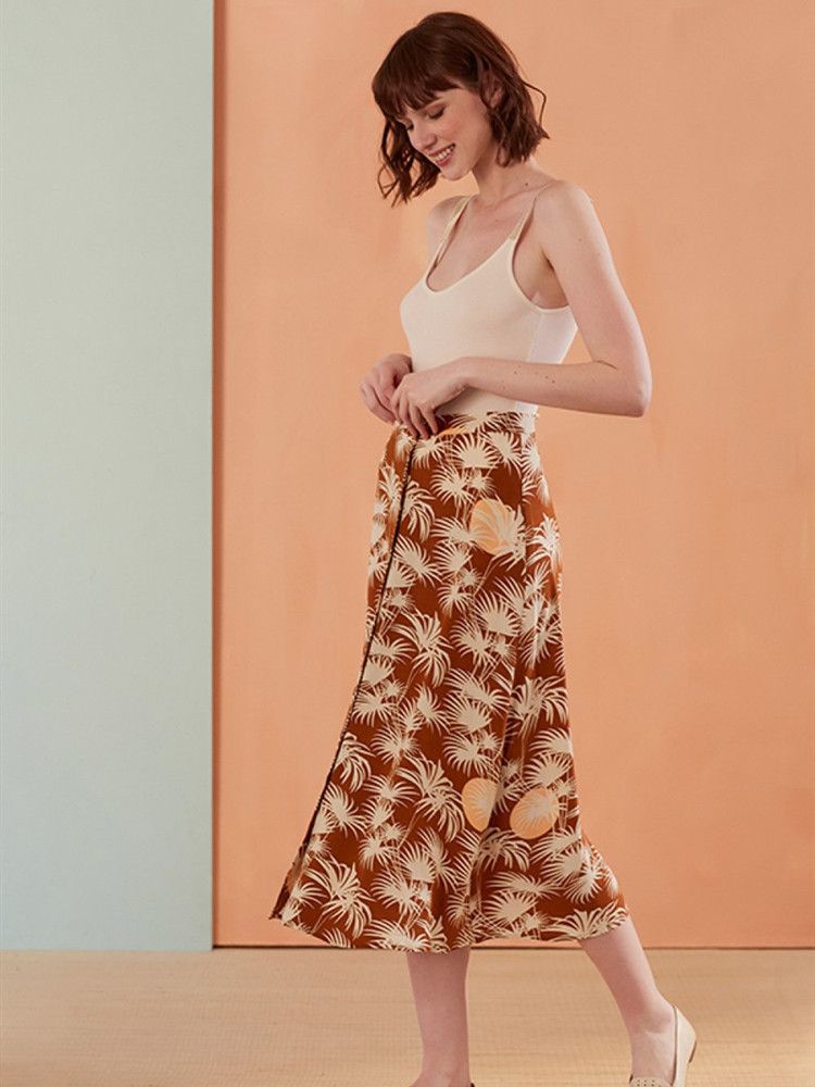 Women Skirts French Sweet Style Vintage New 19 Spring And Autumn Palm Tree Print Jupe Femme Middle Long Buckle Design From Lbdoutfit 77 Dhgate Com