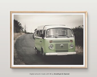 Volkswagen Bus 8 X 10 Illustration Print Art Numerique Bus Volkswagen Dessin Voiture Logo Retro