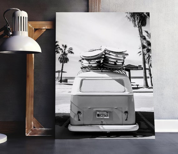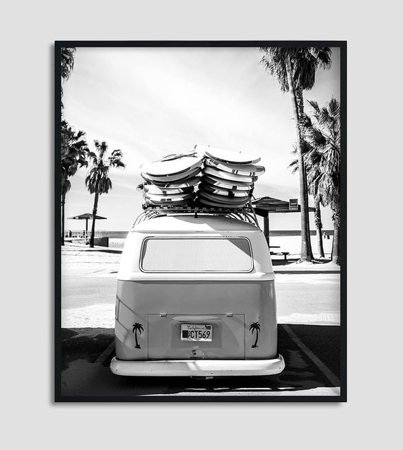Vw Combi Van Print Black White Beach Print Coastal Sea Etsy