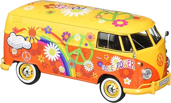 Amazon Com Motor Max 1 24 W B Volkswagen Type 2 T1 Delivery Van With Flower Power Design Yellow Orange Toys Games