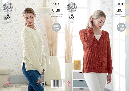 Patron De Tricot King Cole Aran Pour Femme Gilet Et Pull Avec Manches Raglan Et Fentes 4815 Amazon Fr Cuisine Maison