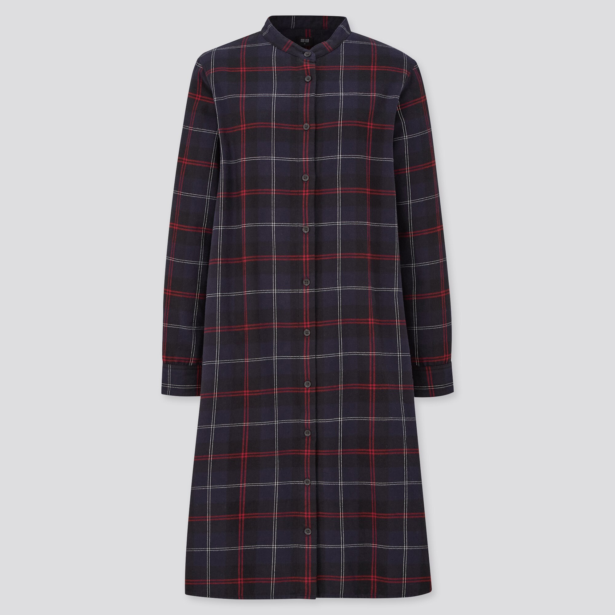 Women Flannel A Line Long Sleeve Dress Uniqlo Us