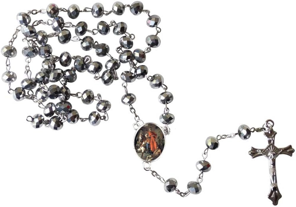 Amazon Com Saint Martin Of Tours San Martin Caballero Patron Of France Metallic Silver Luster Quartz Faceted Round Beads Rosary With Silver Plated Medal Centerpiece And Crucifix Includes A Prayer Card Jewelry