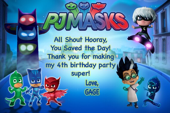 Pj Masks Thank You Disney Jr Kids Birthday Party Etsy