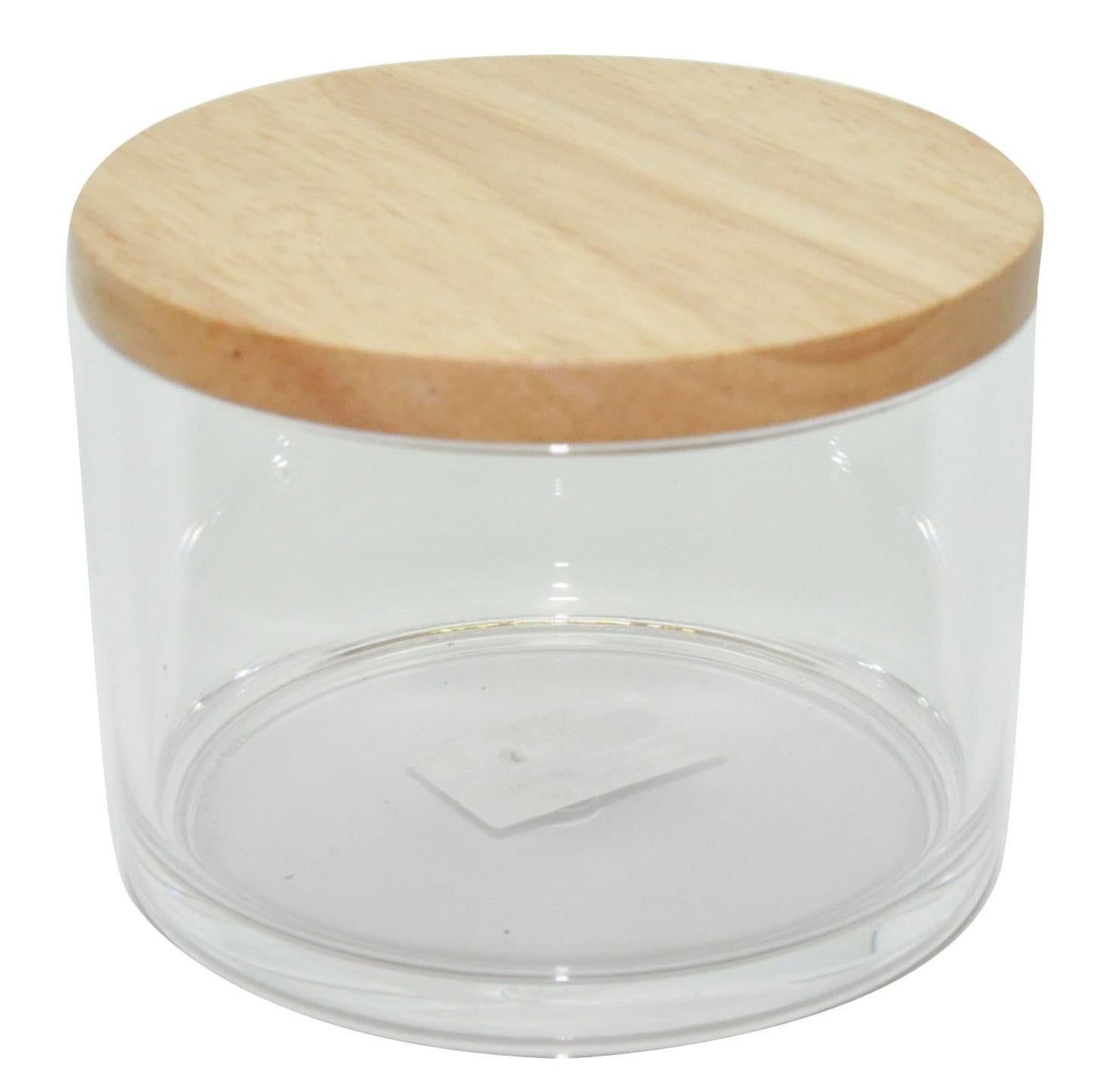 Boite A Coton Ronde Transparente Avec Couvercle En Bois Leroy Merlin