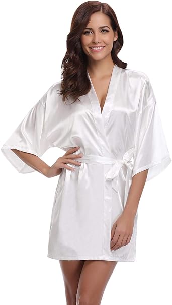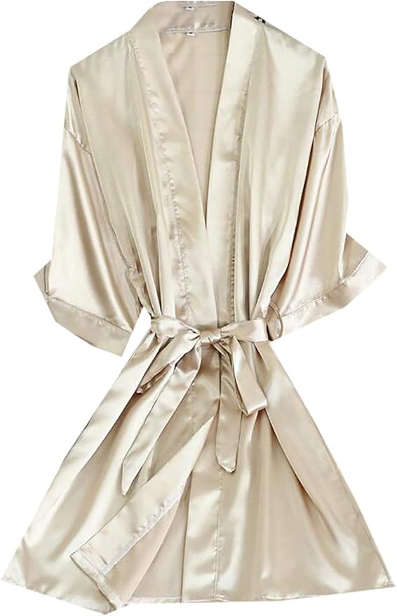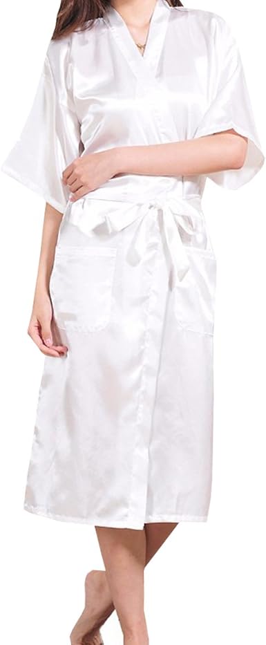 Aibrou Peignoir Satin Femme Robe De Chambre Kimono Femmes Sortie De Bain Nuisette Deshabille Couleur Pure Vetements De Nuit Pour Fete Mariage Amazon Fr Vetements Et Accessoires