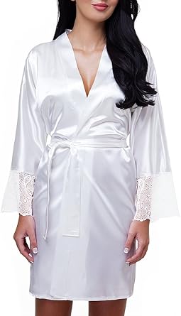 Aibrou Robe De Chambre Femme Peignoir Satin Sexy Kimono Avec Poches Robe Courte Avec Ceinture Chemise De Nuit Pour Mariee Vetements De Nuit Et Pyjama Soiree Amazon Fr Vetements Et Accessoires