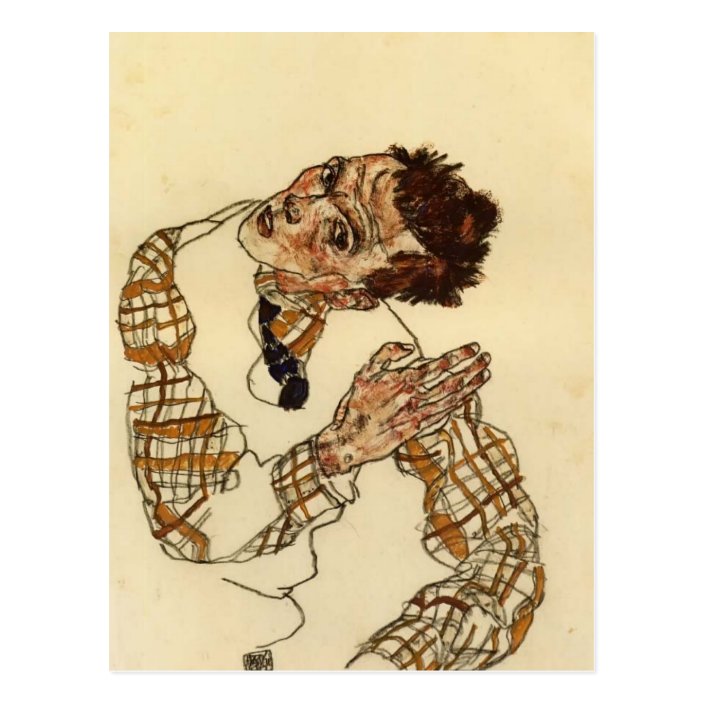 Egon Schiele Self Portrait With Checkered Shirt Postcard Zazzle Com
