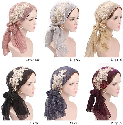 Yonkiny Turban Chimio Femme Musulman Chapeau Chemo Cap Ete Elegant Bonnet Perte De Cheveux Echarpe Foulard Cancer Tete Wrap Hijib Cap Echarpes Et Foulards Fichus Et Foulards De Tete