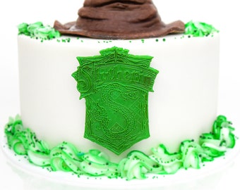 Displayed on a two layer (approx 4 inch tall), 6 inch diameter cake Slytherin Crest, approx 3 x 25 inches, 7$ Pictured with additional item Sorting Hat, approx 4 inches in diameter and. All fondant details (snake's fangs are. There are so many creative ideas for a Harry Potter Party From cakes and desserts to party supplies and decorations, your Harry Potter birthday is sure to attract all of the muggles and wizards.