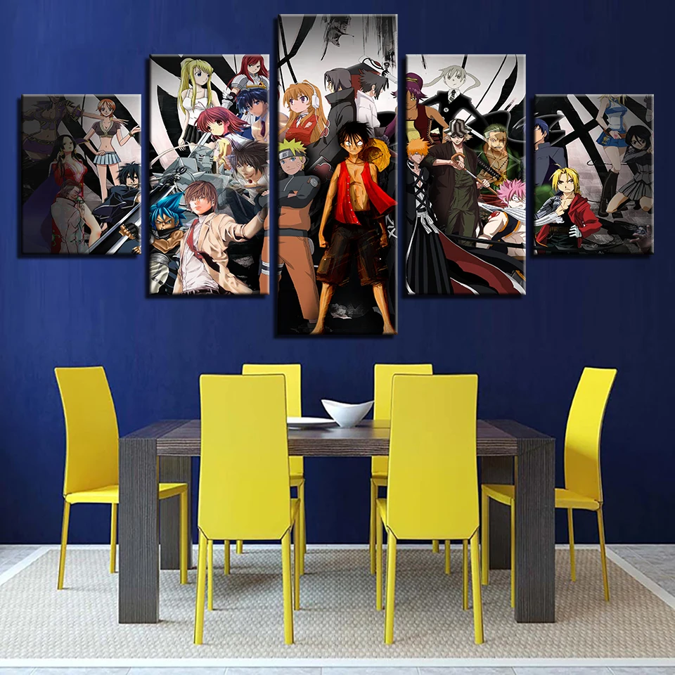 Canvas Art Prints 5 Panel Animation One Piece Modern Frames Paintings Wall Modular Picture Room Poster With Free Shipping Worldwide Weposters Com