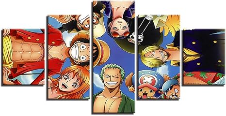 Amazon Com Fxwj One Piece Anime Cartoon Poster Modern Paintings Print Wall Art Printed On Canvas 5 Panels Picture Decoration Canvases For Living Room Frameless 100x55cm Posters Prints