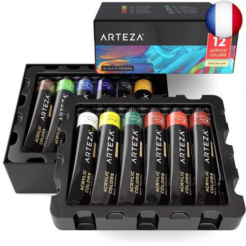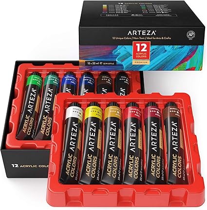 Arteza Coffret Peinture Acrylique 12 Tubes De Couleurs 22ml Pigments Riches Haute Qualite Non Toxique Pour Artistes Professionnesl Peintres Amateurs Et Peinture Enfant Amazon Fr Bricolage