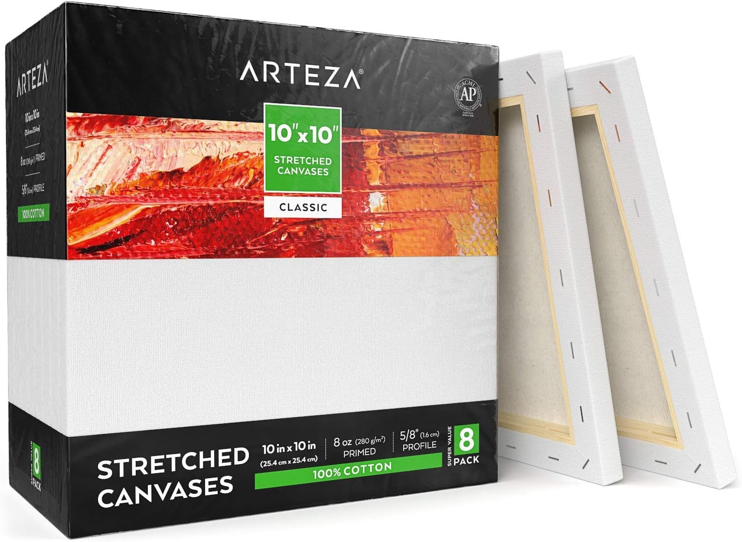 Pour Tous Les Artistes Pre Enduites Paquet De 8 La Peinture A Lhuile Et Les Techniques Dart Humide 100 Coton Pour La Peinture Acrylique Toile Tendue De Qualite Superieure Arteza 30 5x30 5 Cm Loisirs