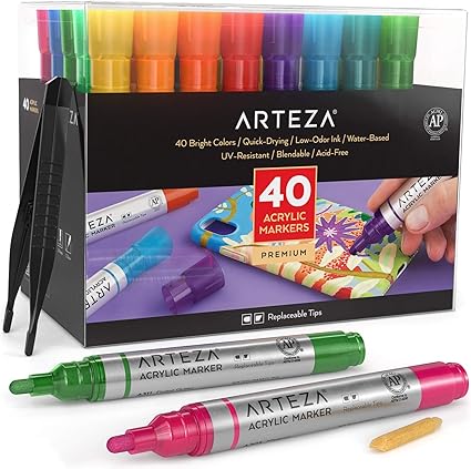 Marqueurs Arteza A Peinture Acrylique Set De 40 Stylos Couleur Assortis Pointes Remplacables Pour Roches Toile Verre Bois Et Plastique Amazon Fr Fournitures De Bureau