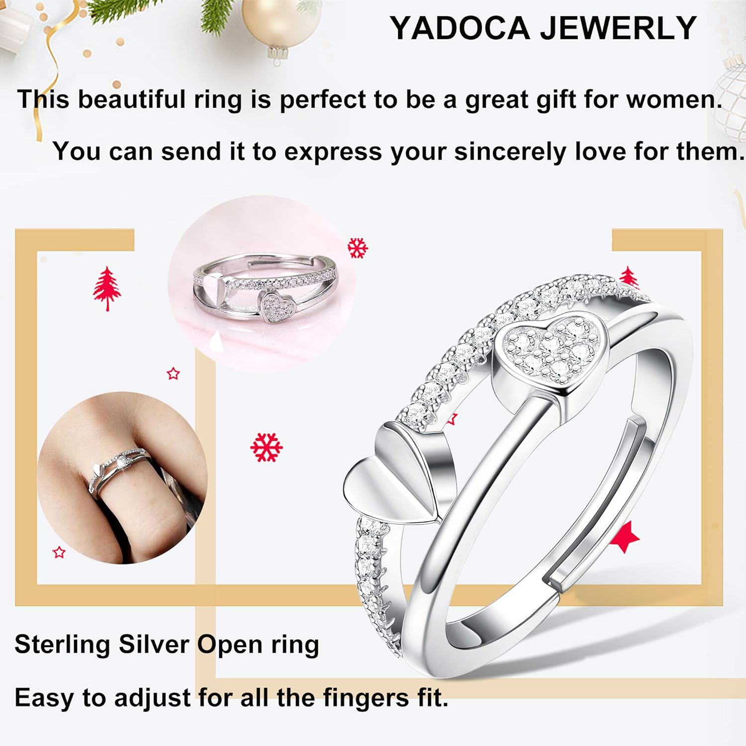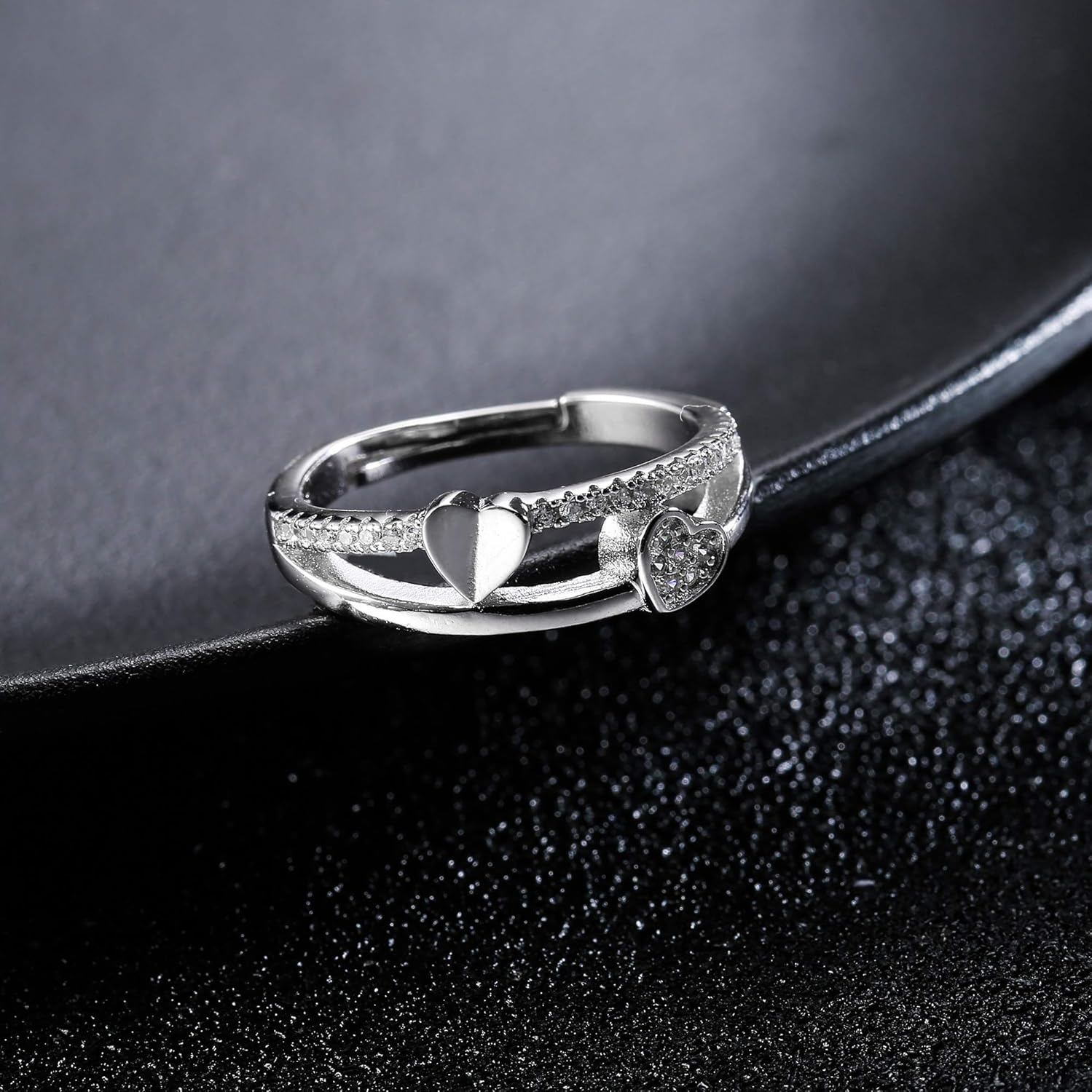 Yadoca Bague Argent Pour Femmes Filles Coeur Bague Ajustable Sterling Argent 925 Zircone Reglable Bague Fantaisie Femme Mariage Anniversaire Cadeau Presentoir Bague Femme Bagues