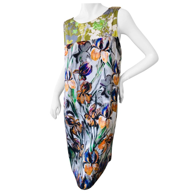Dries Van Noten Bead Embellished Iris Print Silk Dress For Sale At 1stdibs