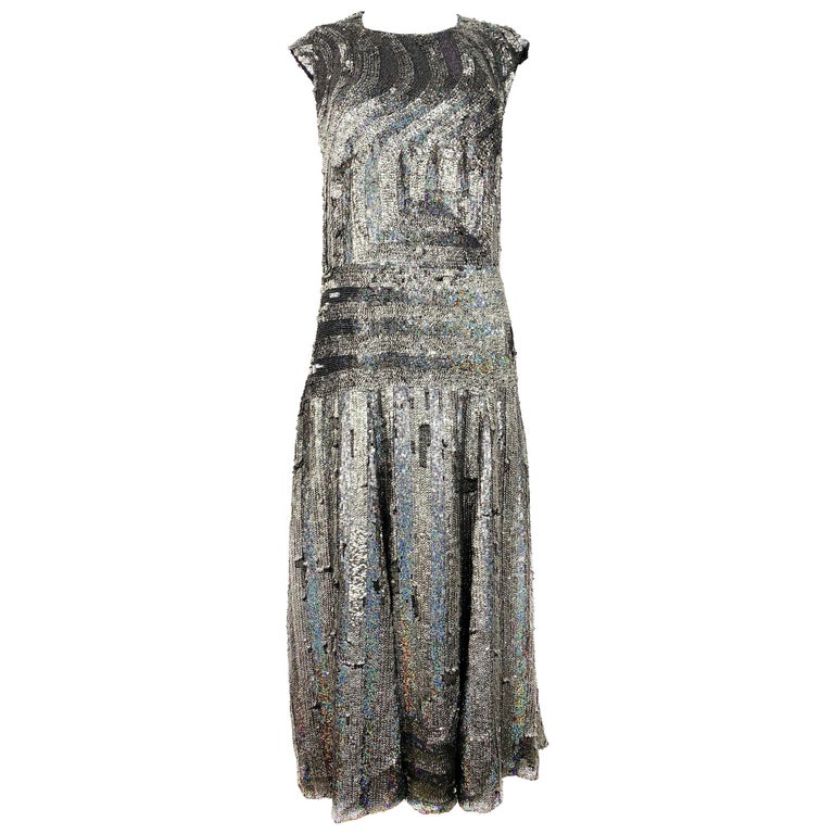 Dries Van Noten Black And Grey Metallic Sequin Evening Dress Size 42 For Sale At 1stdibs