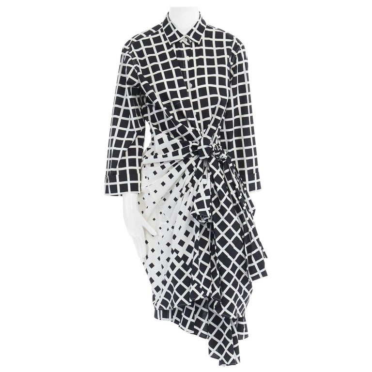 Runway Dries Van Noten Ss09 Black White Checkered Bustle Knot Shirt Dress Fr36 S For Sale At 1stdibs