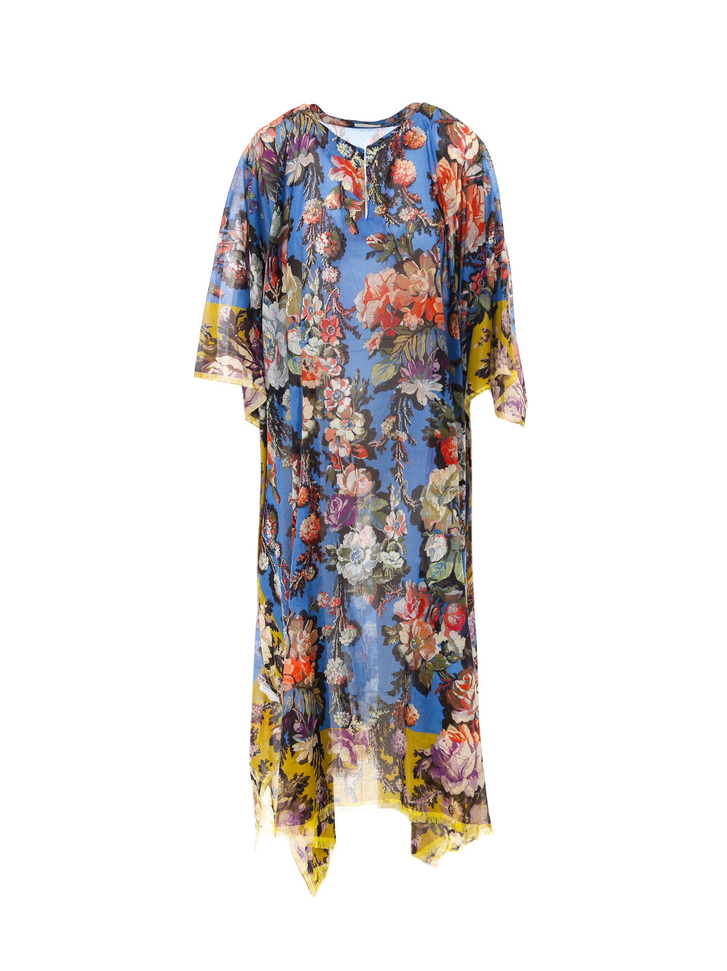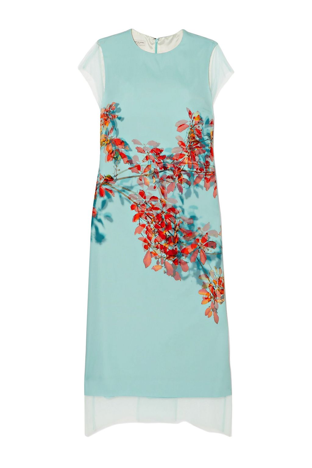 Turquoise Floral Print Silk Tulle And Silk Crepe De Chine Dress Sale Up To 70 Off The Outnet Dries Van Noten The Outnet