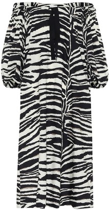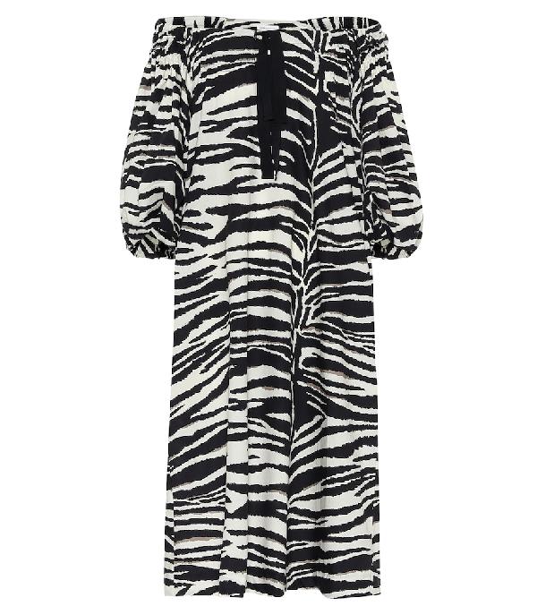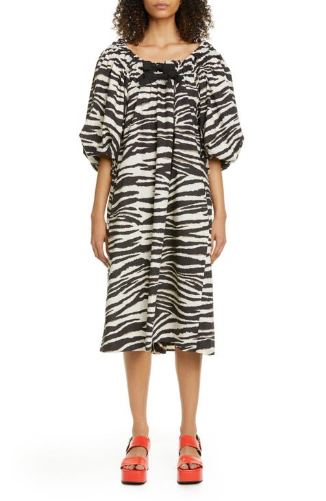 Dries Van Noten Damon Bubble Sleeve Zebra Print Midi Dress In Black Modesens