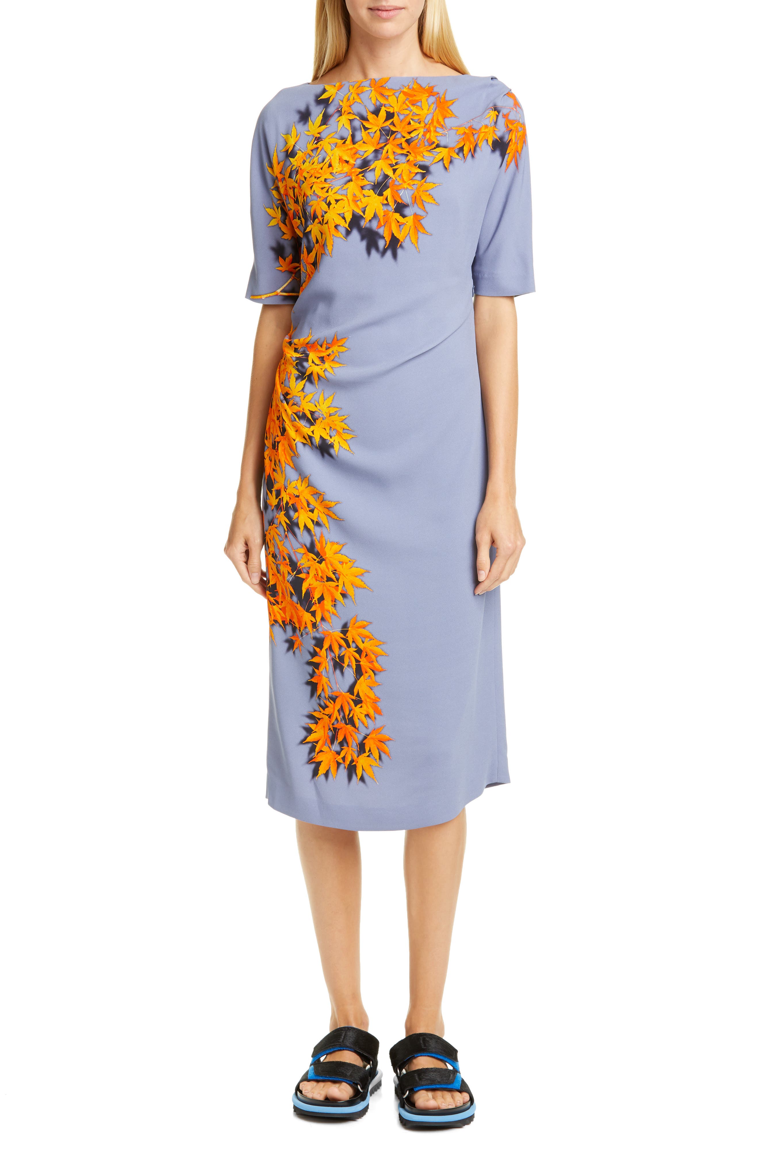 Dries Van Noten Derus Maple Print Ruched Midi Dress Nordstrom