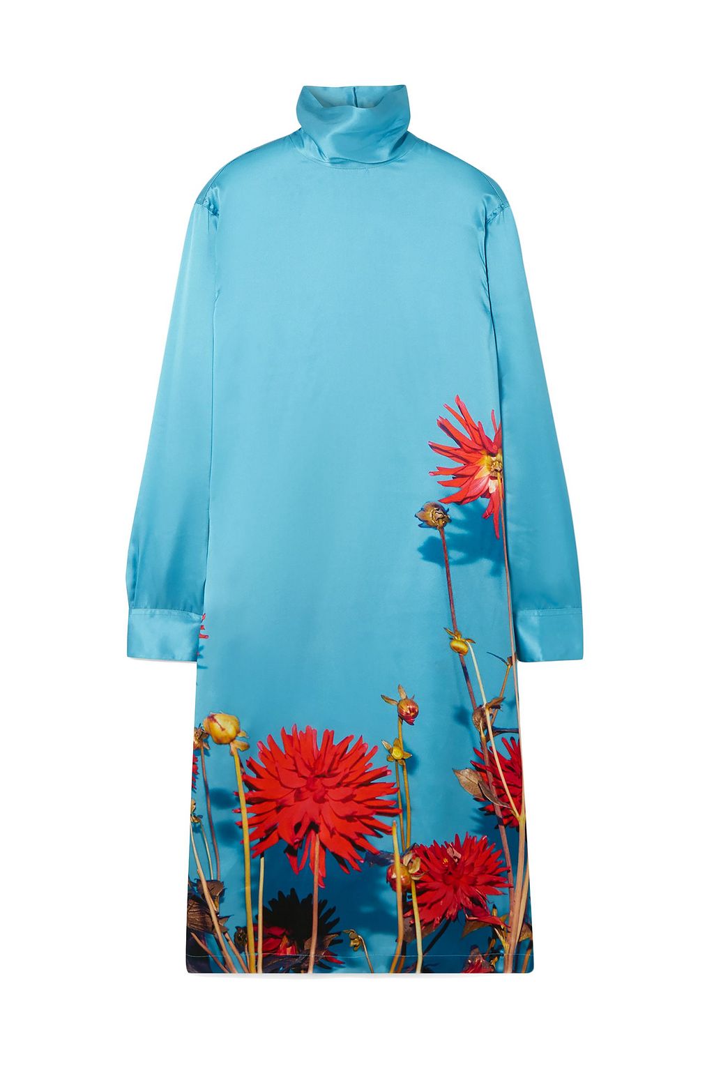 Light Blue Dontisy Floral Print Satin Dress Sale Up To 70 Off The Outnet Dries Van Noten The Outnet