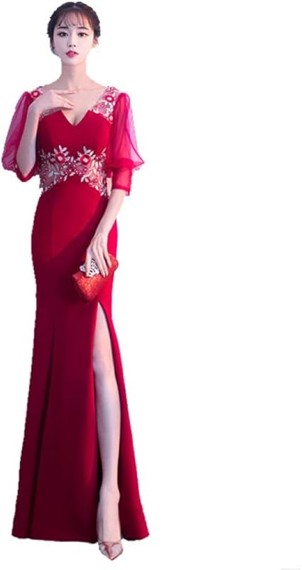 Sbl Robe De Soiree D Ete Longue Rouge Toast Vetements De Mariage Mince Robe De Soiree En Queue De Poisson Robe Feminine Rouge Xxl Amazon Fr Sports Et Loisirs
