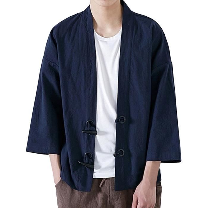 Mode Hommes Japonais Yukata Manteau Casual Kimono Outwear Vintage Cotton Vrac Top Paontry Marine Achat Vente Manteau Caban Cdiscount