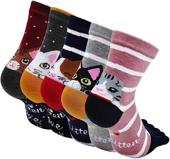 Lofir Chaussettes Fantaisie Femmes Chat Chien Chaussettes Doigts De Pied Chaussette Motif A Animaux Mignon Drole Chaussettes Avec Orteils Filles Chaussettes 5 Doigts En Coton Taille 35 41 5 Paires Amazon Fr Vetements Et Accessoires